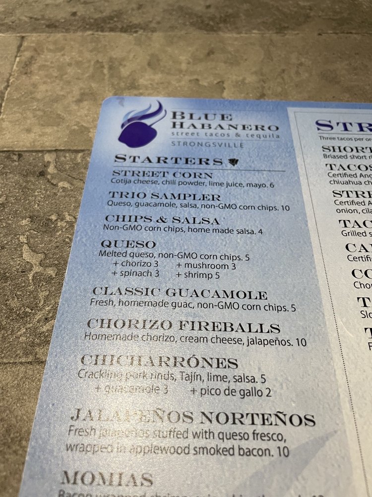 Queso, guacamole, salsa, and non-GMO corn chips.
